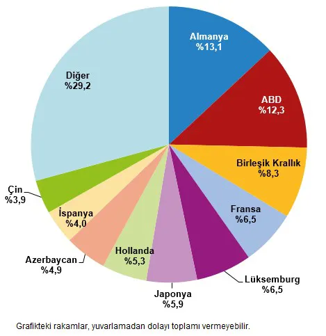 Yabancı kontrollü 11 bin 86 girişimden bin 309 tanesi Almanya tarafından kontrol edildi. Almanya tarafından kontrol edilen girişimlerin 2024 yılında elde ettiği cironun toplam yabancı kontrollü cirodaki payı %13,1 oldu. ABD kontrolündeki bin 10 girişimin toplam yabancı kontrollü cirodaki payı %12,3 iken Birleşik Krallık kontrolündeki 737 girişimin yabancı kontrollü cirodaki payı ise %8,3 olarak gerçekleşti.