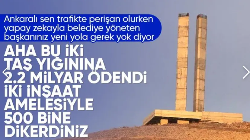 Ankara'da konserlere milyonları akıtan Mansur Yavaş, ardından 2 beton direğe de 2.2 milyar TL harcadı.