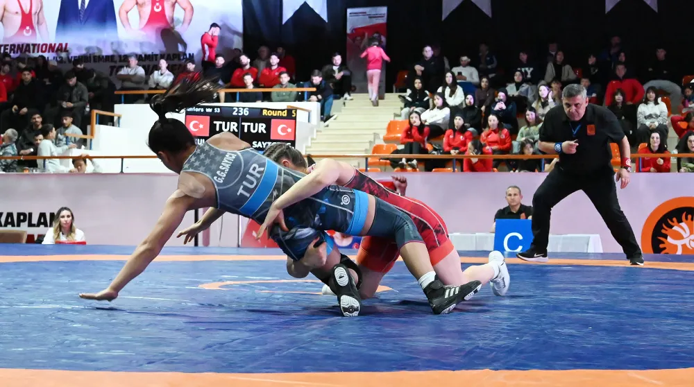 Yaklaşık bin kişinin katıldığı turnuvada sporcular, grekoromen, serbest stil ve kadın güreşi kategorilerinde dereceye girebilmek için kıyasıya mücadele ediyor.