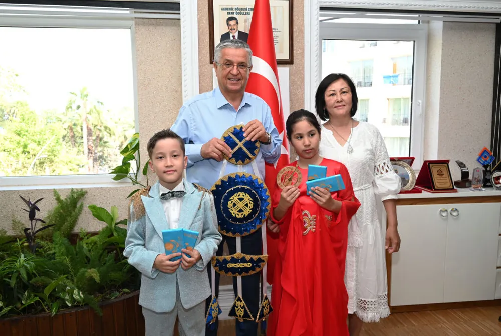 Başkan Topaloğlu'nun kendisine hediye edilen Kazakistan'ın yöresel kıyafetini giymesi renkli görüntüler oluşturdu.