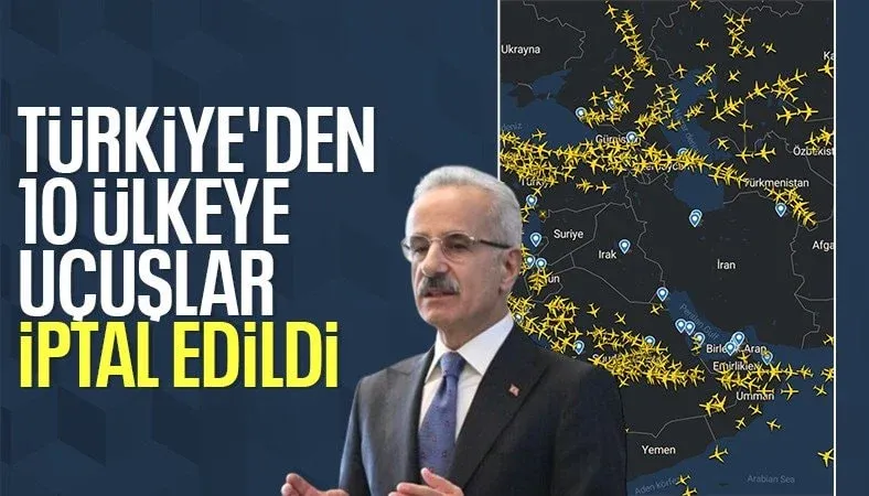 Bakan Uraloğlu açıklamasında, devam eden riskler nedeniyle İran, Irak, Suriye, Lübnan ve Ürdün'e olan bütün uçuşların 2 Mart'a kadar iptal edildiğini duyurdu.
