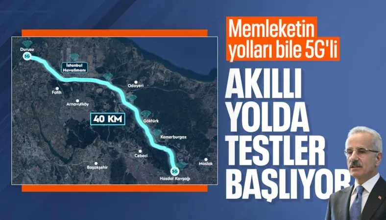 Ulaştırma ve Altyapı Bakanı Abdulkadir Uraloğlu, “Pilot olarak belirlenen İstanbul Hasdal Kavşağı ile İstanbul Havalimanı arasındaki 40 kilometrelik güzergahta 19 farklı noktada yapılan kurulumla yolun tamamında 5G altyapısını tamamladık. Kurulum çalışmalarını tamamladığımız bu pilot koridorda artık test süreçlerine geçiyoruz. Sahada gerçek zamanlı veri akışını izleyerek sistemin tüm bileşenlerini eş zamanlı olarak deneyeceğiz.” dedi.
