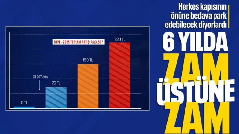 İBB Meclisi’nde İSPARK ücretlerinin geçtiğimiz hafta AK Partili Meclis Üyelerinin tüm itirazlarına rağmen CHP oylarıyla yeniden zamlandığını belirten Özdemir, "Bu son oylamayla birlikte İSPARK ücretleri, 2019–2025 yılları arasında %3567 oranında artarak 6 TL’den 220 TL’ye yükseldi." dedi.