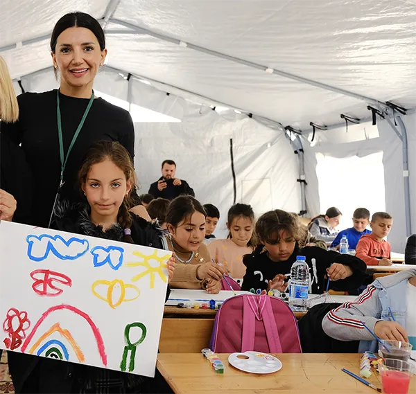 Depremde yakınlarının ölümüne tanıklık eden travma altındaki çocukların resimle terapisi için 14 aydır çalışan Abide Gülel, çocuklara harika bir final hazırladı.