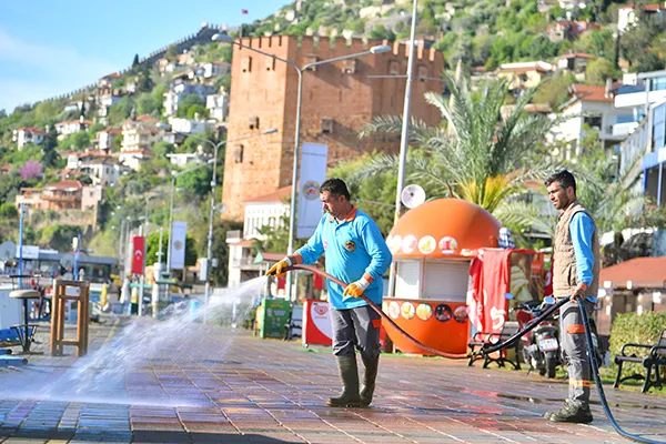 Alanya Belediyesi Temizlik İşleri Müdürlüğü ekipleri, Antalya Büyükşehir Belediyesi ekipleriyle birlikte koordineli bir şekilde Ramazan Bayramı öncesi kent genelinde temizlik çalışmalarını sürdürüyor.