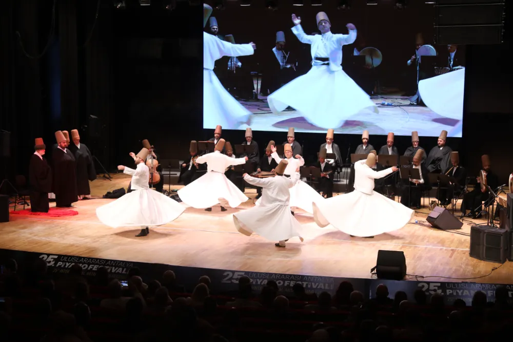 Tasavvufun birlik, aşk ve insân-ı kâmil anlayışı çerçevesinde gerçekleştirilen törende, semânın anlam dünyası izleyiciyle buluştu. Tasavvufun birlik, aşk ve insân-ı kâmil anlayışı çerçevesinde gerçekleştirilen törende, semânın anlam dünyası da izleyiciyle buluştu. Programda Antalya Büyükşehir Belediyesi İsmail Baha Sürelsan Konservatuvarı Tasavvuf Müziği Topluluğu tarafından Mevlevi bestekârlardan Abdülbâki Nâsır Dede’nin Acembûselik Mevlevi Ayin-i Şerifi ve Semâ Mukabelesi icra edildi. Töreninin başında okunan Nâ’t-ı Şerîfi, Türk Sanat Müziği İcrâ Heyeti ve Tasavvuf Müziği Topluluğu Şefi Celâl Abacı, sonunda okunan Kur’ân-ı Kerîm’i Abdülkadir Aktürk seslendirdi. Baş taksimi Neyzenbaşı Umut Murat Aytekin, son taksimi Kanûnî Alperen Kozak yaptı. Kudümzenbaşı Aygün Altınbaş, Postnişîn Mahmut Sülükçü’ydü. Şeb-i Arûs Semâ Töreni, ilgiyle izlendi.