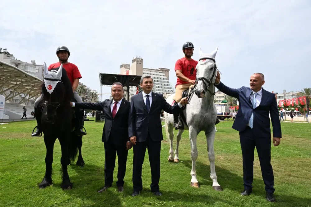 Gençlerin hazırladığı nefes kesen şovları ve gösterileri izleyen protokol üyeleri gençlerin bayram coşkusuna ortak oldu. Antalya Valisi Hulusi Şahin, Büyükşehir Belediye Başkanı Muhittin Böcek ve protokol heyeti etkinlik alanından ayrılarak yat limanına geçti ve buradan tekneyle açılarak deniz kortejine katıldı. Türk bayraklarıyla süslenmiş tekneler, botlar ve yelkenliler Antalyalıları selamladı. Deniz korteji, bayram coşkusunu denizde de devam ettirerek unutulmaz anlar yaşattı.