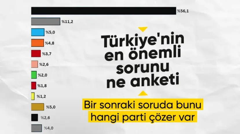 Katılımcılara sorulan "Sizce Türkiye'nin en önemli sorunu nedir?" sorusuna gelen cevapların başında yüzde 56,1 ile ekonomi ve hayat pahalılığı geldi.