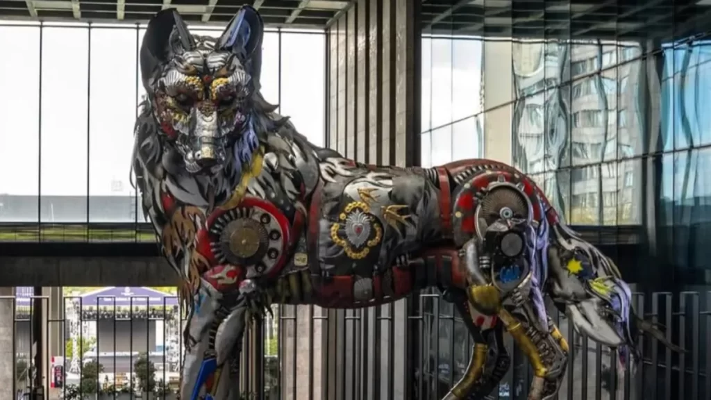 ASELSAN'ın silah üretiminden arta kalan malzemelerle yaptırdığı Bozkurt heykeli, Atatürk Kültür Merkezi'nde sergilenmeye başlandı.
