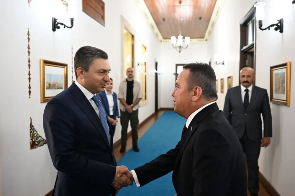 Başkan Muhittin Böcek de ikinci dönem Büyükşehir Belediye Başkanı olarak ilk ziyaretine Antalya Valiliği ile başlamak istediğini belirterek, “Başta siz olmak üzere tüm kurum kuruluşlarla, 19 ilçe belediye başkanı arkadaşımla Antalya’mız için ayrımız gayrımız olmadan hep birlikte çalışmaya devam edeceğiz” diye konuştu.