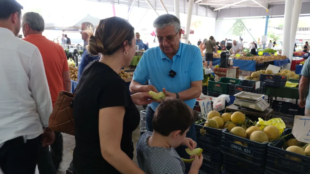 Kemer Belediye Başkanı Necati Topaloğlu, Cuma günleri Arslanbucak Mahallesi’nde kurulan sebze ve meyve pazarında tezgah açan esnafı ziyaret etti. Başkan Topaloğlu’na Kemer Belediye Başkan Yardımcısı Emin Gül eşlik etti.