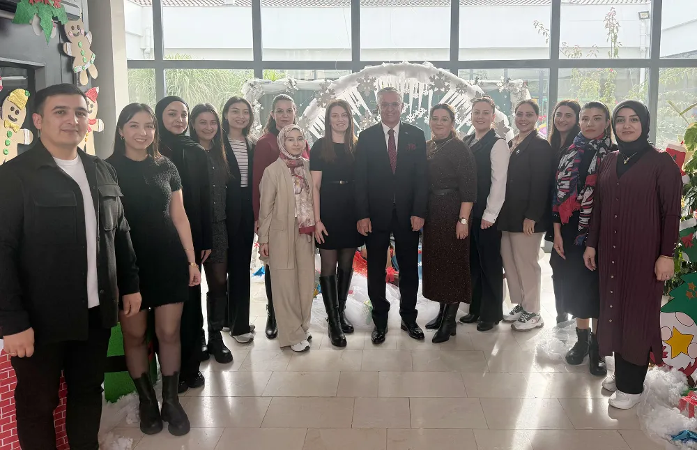 Başkan Topaloğlu’nun girişimleriyle Kemer’in ilk turizmcilerinden olan hayırsever iş insanı Orduvar Akman ve eşi Ülker Akman tarafından eğitime kazandırılan kreşte öğretmenlerle hatıra fotoğrafı çektiren Başkan Topaloğlu, öğretmenlere çalışmalarında kolaylıklar diledi.