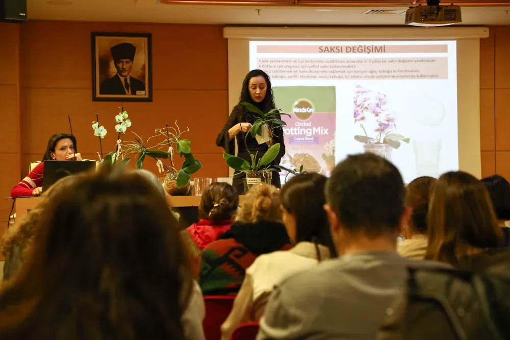 Antalya Büyükşehir Belediyesi, çevre bilincini artırmaya, yeşil alanlara ve bitki yetiştiriciliğine yönelik farkındalık oluşturmaya katkı sağlayan eğitim ve bilgilendirme çalışmalarına kesintisiz devam ediyor. Büyükşehir Belediyesi Ana Hizmet Binası içerisinde gerçekleştirilen eğitim, orkidelerin sağlıklı gelişimi için dikkat edilmesi gereken temel bakım süreçleri ayrıntılı şekilde ele alındı.