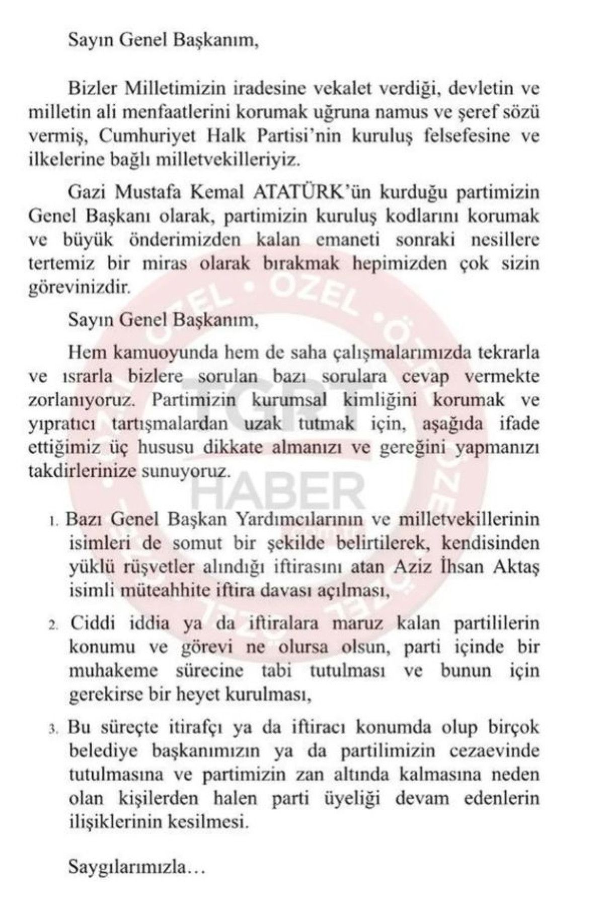 Kendilerini CHP’nin kuruluş felsefesine ve Atatürk ilkelerine bağlı milletvekilleri olarak tanımlayan imzacılar, Özel’den parti içinde kapsamlı bir arınma süreci başlatmasını talep etti.