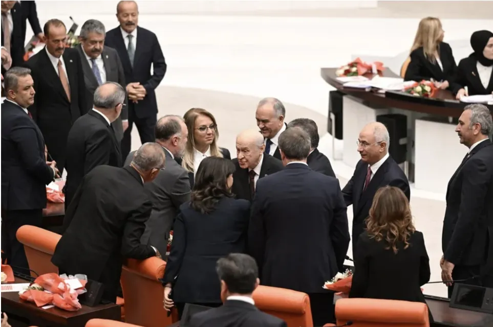 Devlet Bahçeli, Meclis'in yeni yasama yılının açılışında DEM Partili yöneticilerle tokalaşmasına ilişkin, "milli birlik ve kardeşlik mesajı" olduğunun altını çizdi.