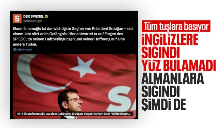 Bir yıldır cezaevinde bulunan Ekrem İmamoğlu, Alman Der Spiegel dergisine yaptığı açıklamada Batılı ülkelerin tutumuna ilişkin eleştirilerde bulundu.