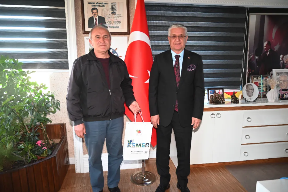 Kemer Belediyesi Temizlik İşleri Müdürlüğü’nden emekliye ayrılan İsa Balaman, Kemer Belediye Başkanı Necati Topaloğlu’na veda ziyaretinde bulundu.