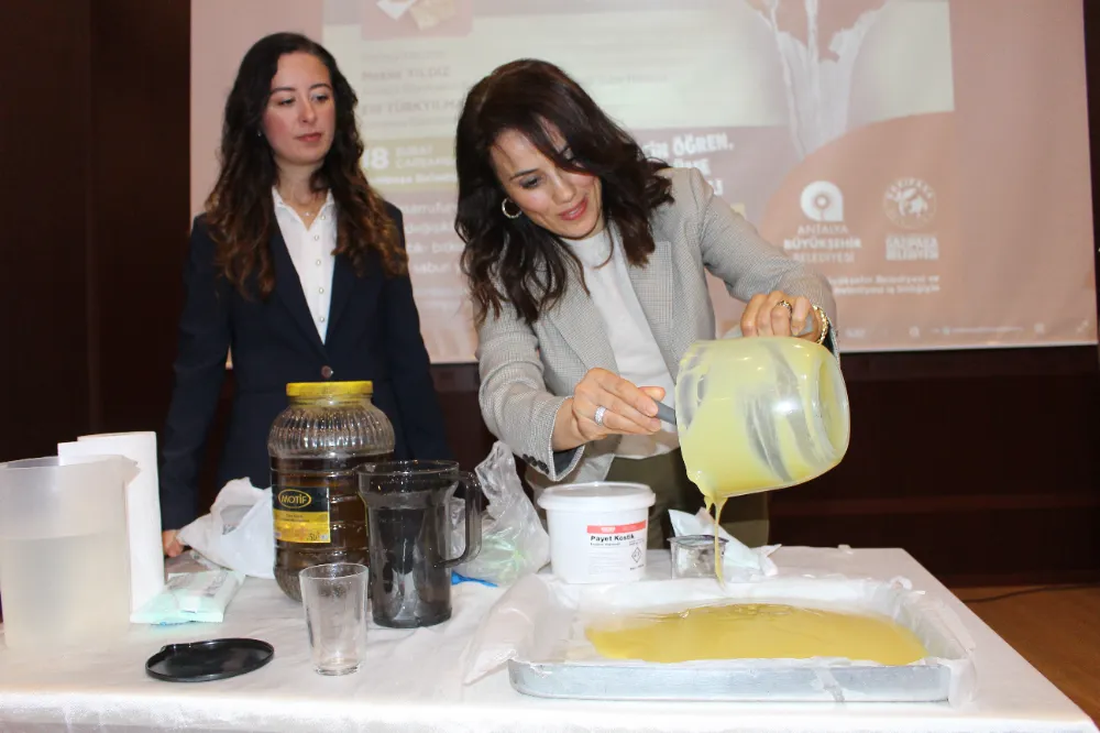 Gazipaşa Belediyesi Kültür Merkezinde düzenlenen eğitimde katılımcılara uygulamalı doğal sabun yapımı da öğretildi.