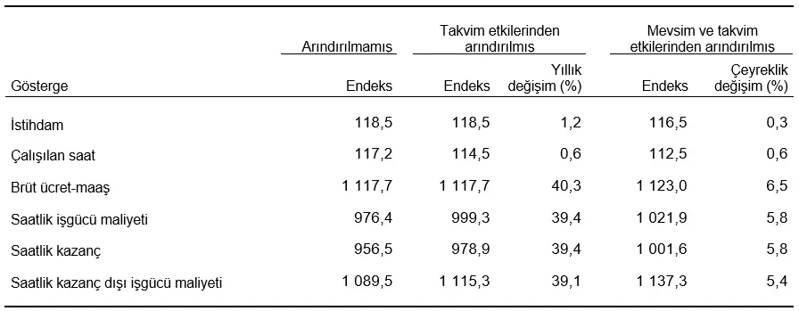 Saatlik kazanç dışı işgücü maliyeti endeksi yıllık %39,1 arttı