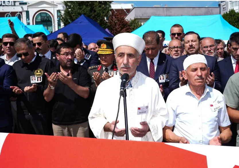 Öğle vakti düzenlenen cenaze törenine, şehitlerin ailesi ve yakınlarının yanı sıra İçişleri Bakanı Ali Yerlikaya, İzmir Valisi Süleyman Elban, Ege Ordusu ve Garnizon Komutanı Orgeneral İrfan Özsert, AK Parti Genel Sekreteri Eyyüp Kadir İnan, CHP Genel Başkan Yardımcısı Murat Bakan, AK Parti, MHP ve İYİ Parti'li bazı milletvekilleri, İzmir Büyükşehir Belediye Başkanı Cemil Tugay, Emniyet Genel Müdürü Mahmut Demirtaş, Sahil Güvenlik Hava Komutanı Tuğamiral Ertuğrul Şerbetci ile askeri erkan, siyasi partilerin temsilcileri, meslektaşları da katıldı.