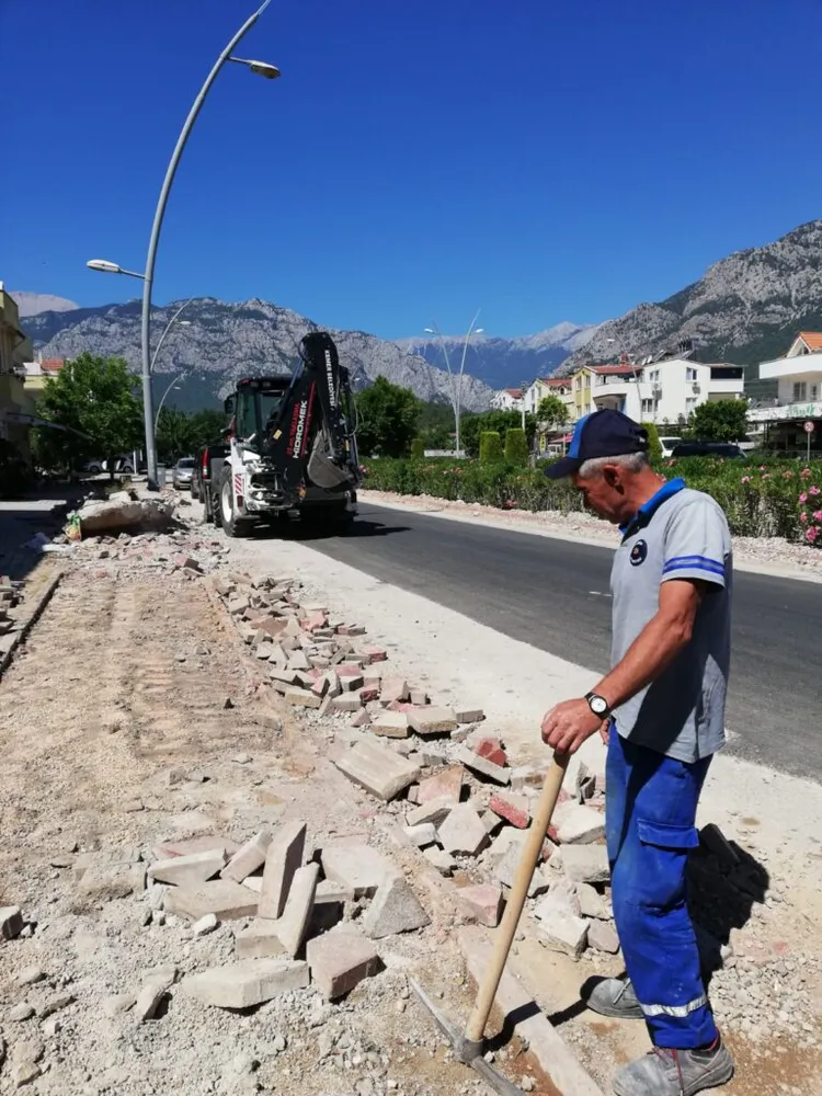 Kemer Belediyesi Fen İşleri Müdürlüğü ekipleri, ilçe genelinde bozulan yol ve kaldırımlarda çalışmalarını sürdürüyor.