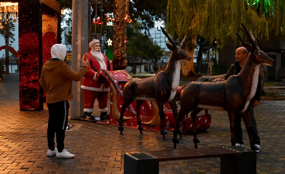 İlçede tatilini sürdüren yerli ve yabancı misafirler ile vatandaşlar, Noel Baba heykeli ve ışıl ışıl olan parkta bol bol fotoğraf çekti.