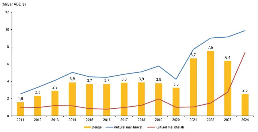 Kültürel mal ihracat, ithalat ve dış ticaret dengesi, 2011-2024