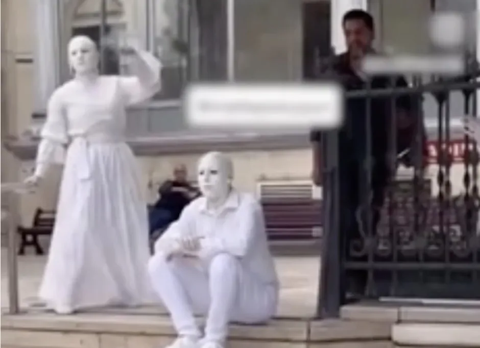 Cami önünde düzenlenen performans tepkilere yol açtı. Sessiz göstericilerin taş heykele benzer hareketleri gündem oldu.