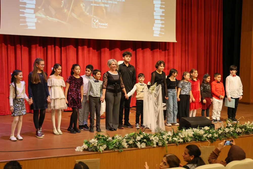 Yoğun katılımın olduğu konser programında, müzik öğretmeni Ceren Pınar rehberliğinde sahne alan minik sanatçılar, sergiledikleri performanslarla sanatseverlerden büyük beğeni topladı.