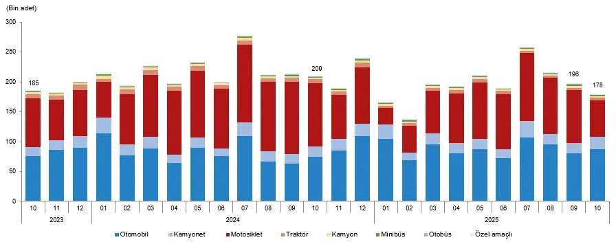 Trafiğe kaydı yapılan taşıt sayısı, Ekim 2023-Ekim 2025