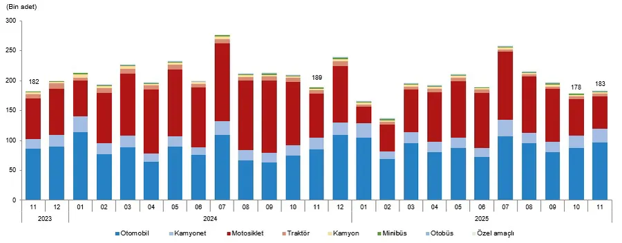 Trafiğe kaydı yapılan taşıt sayısı, Kasım 2023-Kasım 2025