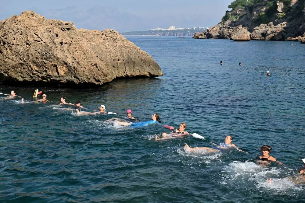 Antalya’da Muratpaşa Belediyesi’nin falez sahil bandında yer alan mavi bayraklı Erenkuş plajında haftada üç gün düzenlenen su cimnastiği kursu yoğun ilgiyle gerçekleşiyor.