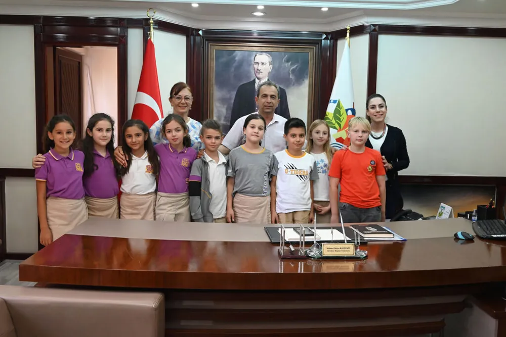 Müdür Yardımcısı Özleyiş Yalçın ve sınıf öğretmeni Kifayet Seyhan Yüksel eşliğinde Kemer Belediyesi’ne gelen öğrenciler, “Yerel yönetimler ve yöneticiler” konusunda merak ettiklerini Kemer Belediye Başkan Yardımcısı Mehmet Derya Baytekin’e sorarak öğrendi.