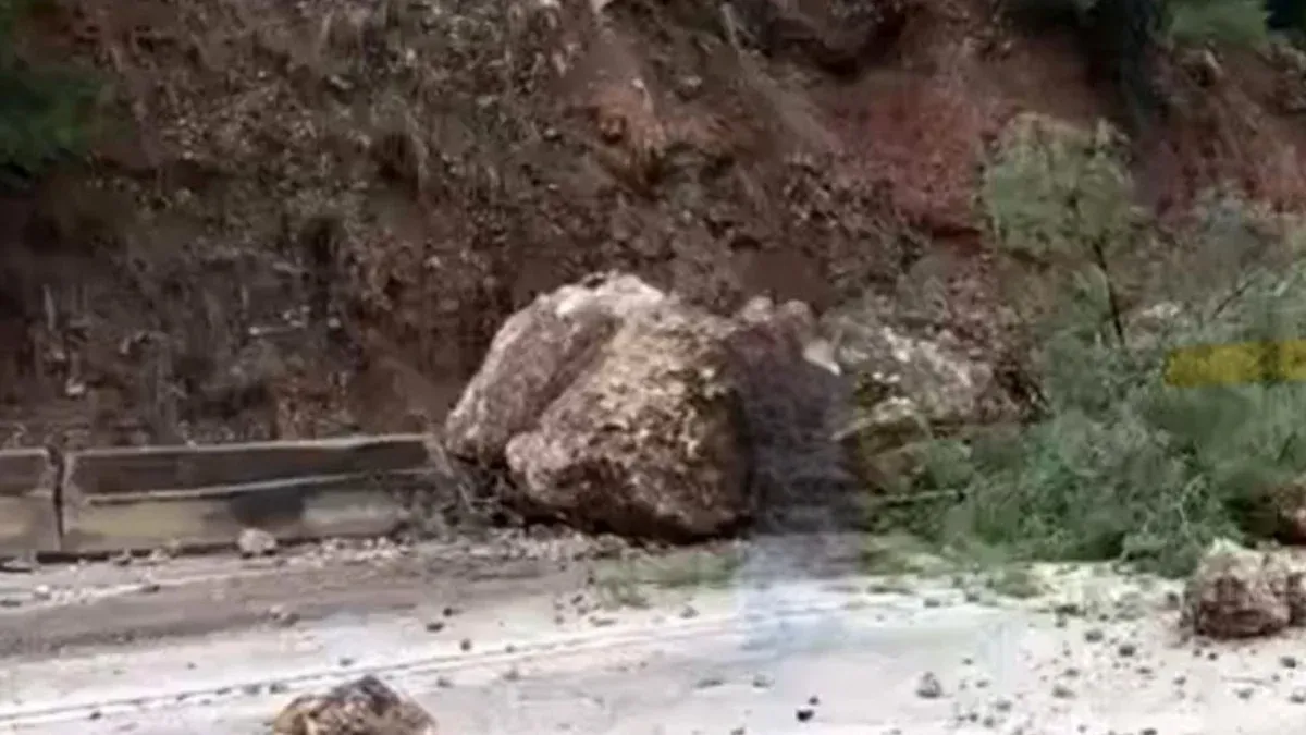 Heyelan sırasında yoldaki istinat duvarının yıkılması sonucu ulaşım güvenliği tehlikeye girerken, yetkililer yolu trafiğe kapattı.