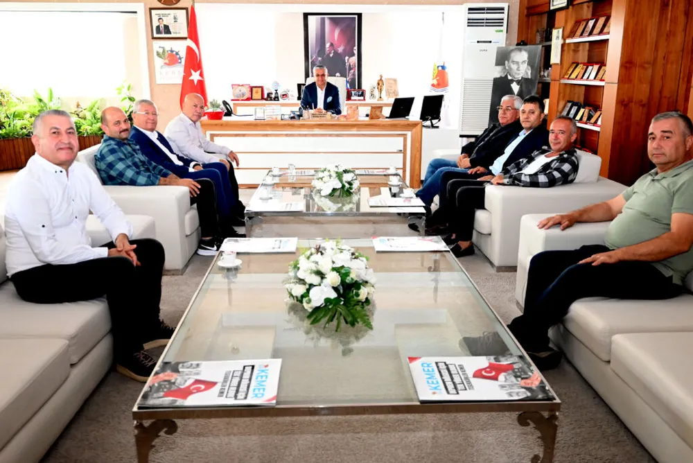 Kemer Şoförler ve Otomobilciler Esnaf Odası Başkanı Mustafa Tıraş ve Kemer Tur Taksi Yönetimi, Kemer Belediye Başkanı Necati Topaloğlu’nu makamında ziyaret etti. Ziyarette, Kemer Belediyesi Meclis Üyesi Mehmet Akın da yer aldı.
