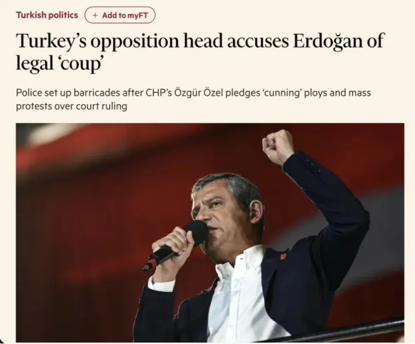 İngiliz Financial Times'a konuşan CHP Genel Başkanı Özgür Özel, yine Batı medyası üzerinden kendi ülkesini tehdit ve şikayetlerini sürdürdü. Özel, toplumsal olaylarla hayatı durdurma noktasına getirebileceklerini söyledi.