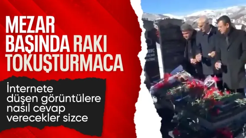 Veli Ağbaba gibi partinin önemli isimleriyle birlikte kadehlerini dolduran CHP'liler Genç'in kabri başında partili arkadaşlarının cep telefonu kameralarına poz verdi.