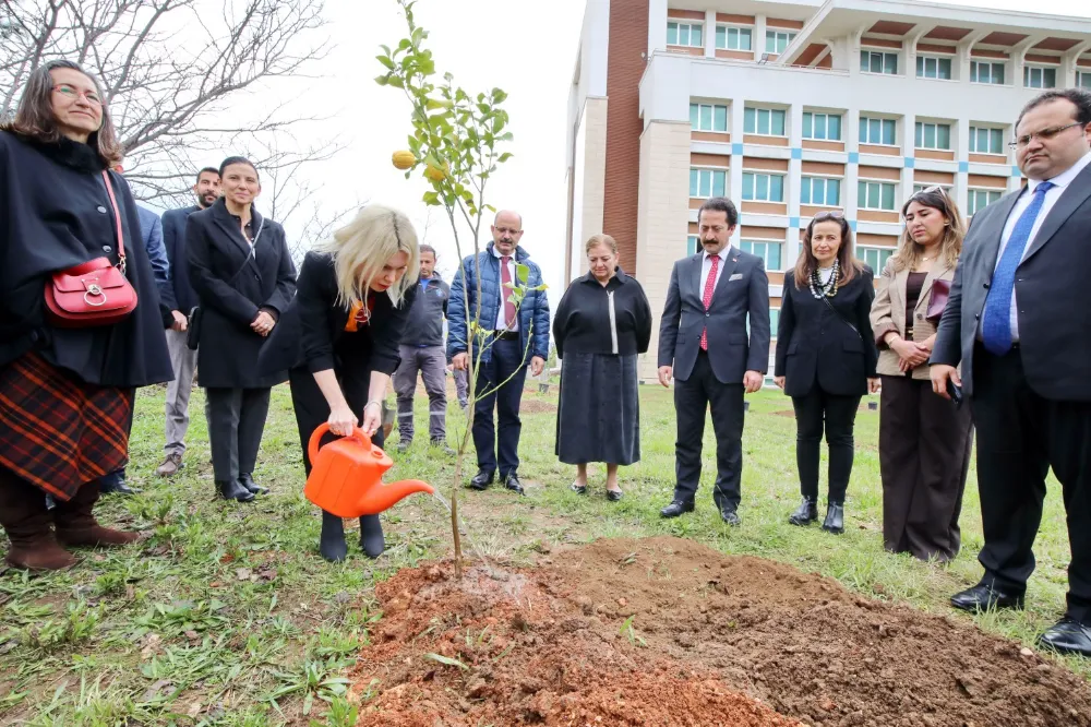 Akdeniz Üniversitesi Rektörü Prof. Dr. Özlenen Özkan, “Bugün burada çok anlamlı ve değerli bir iş için bir aradayız. İlahiyat Fakültemizin bahçesini 80 portakal ve 20 limon fidesiyle buluşturmanın sevincini yaşıyoruz. Bu sadece bir dikim faaliyeti değil; toprağa, hayata ve geleceğe dair bir sorumluluk beyanıdır. Peygamberimizin “Yarın kıyametin kopacağını bilseniz bile elinizdeki fidanı dikiniz” sözü, bize bu vazifenin ehemmiyetini öğretir. İnancımız, insanla birlikte doğayı da korumayı; emeği, bereketi ve emaneti gözetmeyi öğütler. Bugün attığımız bu adım, tam da bu anlayışın sahadaki karşılığıdır.” dedi.
