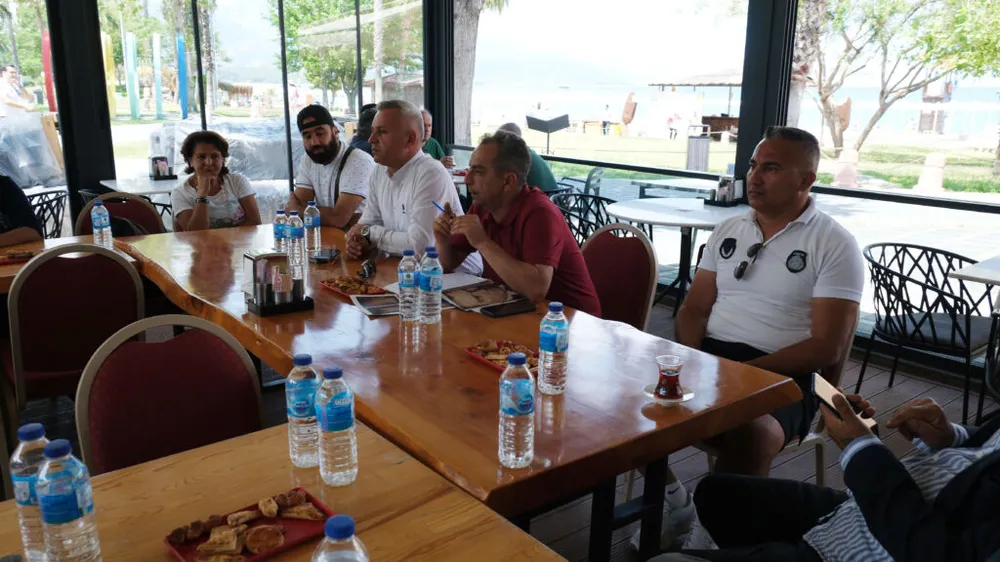 Kemer Belediyesi’ne ait Deniz Kafe’de yapılan toplantıda, Kemer Belediyesi Zabıta Müdürü Erhan Kurtoğlu da yer aldı.