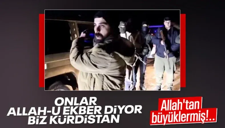 Sosyal medyaya düşen görüntülerde bir PKK’lı teröristin, İslam dünyasının ortak nidası olan "Allah-u Ekber" sözünü hedef alarak, "Onlar Allah-u Ekber diyor. Biz yaşasın Kürt ve Kürdistan diyoruz.