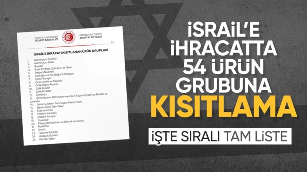 İsrail'e ihracat kısıtlaması getirildiğini duyuran ve 54 üründe uygulanacağını açıklayan Ticaret Bakanlığı'ndan detaylı açıklama geldi.