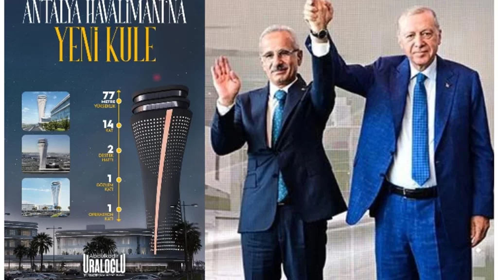 Türkiye’nin turizm başkenti Antalya, ulaşım altyapısında dev bir projeye daha kavuşuyor. Ulaştırma ve Altyapı Bakanı Abdulkadir Uraloğlu, Antalya Havalimanı’nda inşasına başlanan 77 metre yüksekliğindeki yeni hava trafik kontrol kulesi ile havalimanının operasyonel kapasitesinin önemli ölçüde artacağını açıkladı.