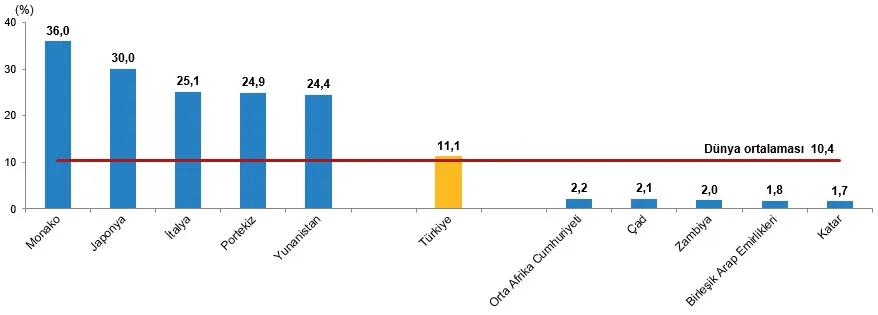 Türkiye, yaşlı nüfus oranına göre sıralamada 194 ülke arasında 75. sırada yer aldı